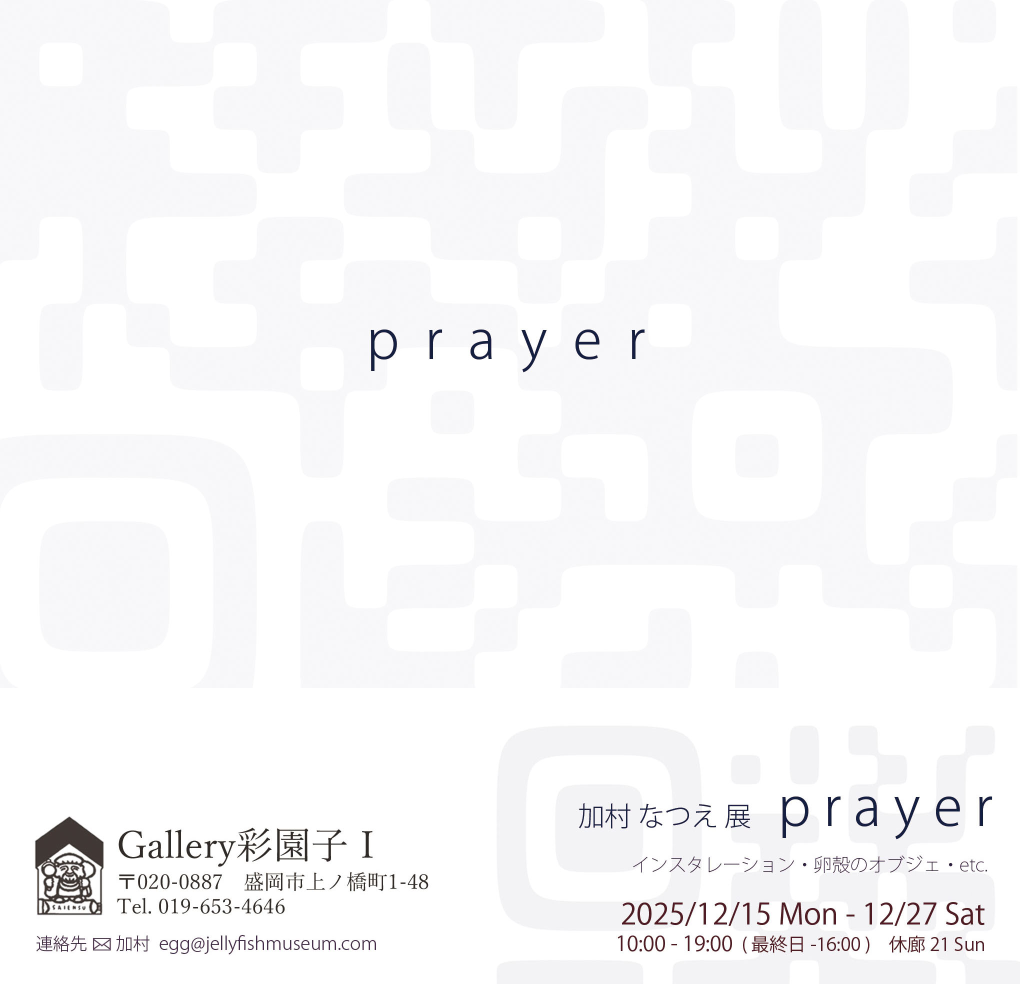会期 2025年12月15日(月)〜27日(土) 休廊 21日(日)